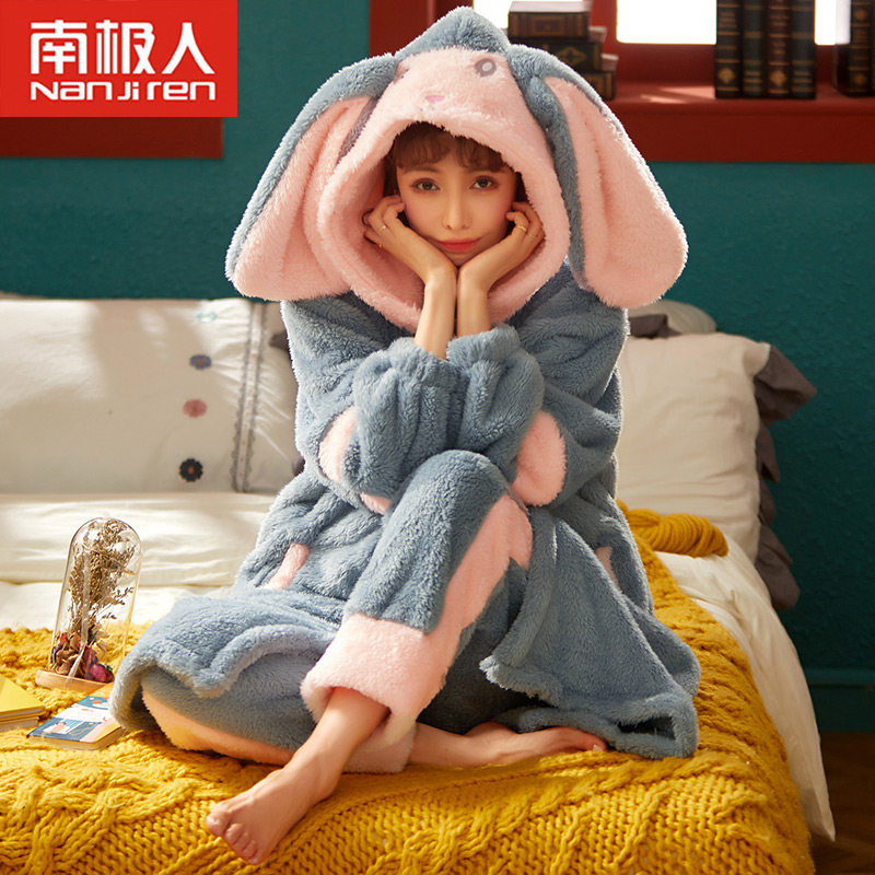 南极人珊瑚绒睡衣女2022年新款加厚加绒秋冬季网红款睡袍家居服
