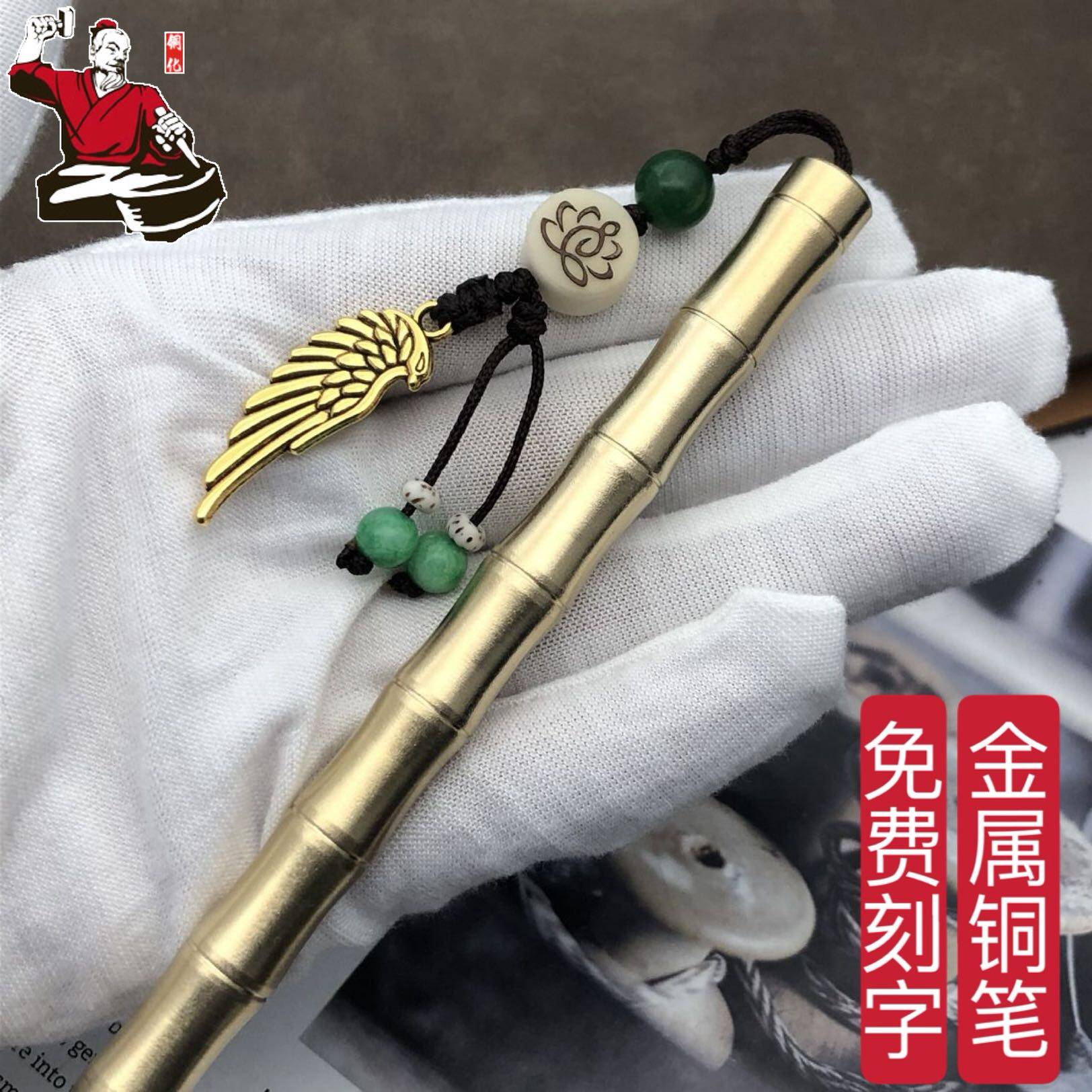 竹节黄铜笔纯金属商务签字笔 复古铜笔中性笔学生用定制刻字礼物热门设计联盟服务商