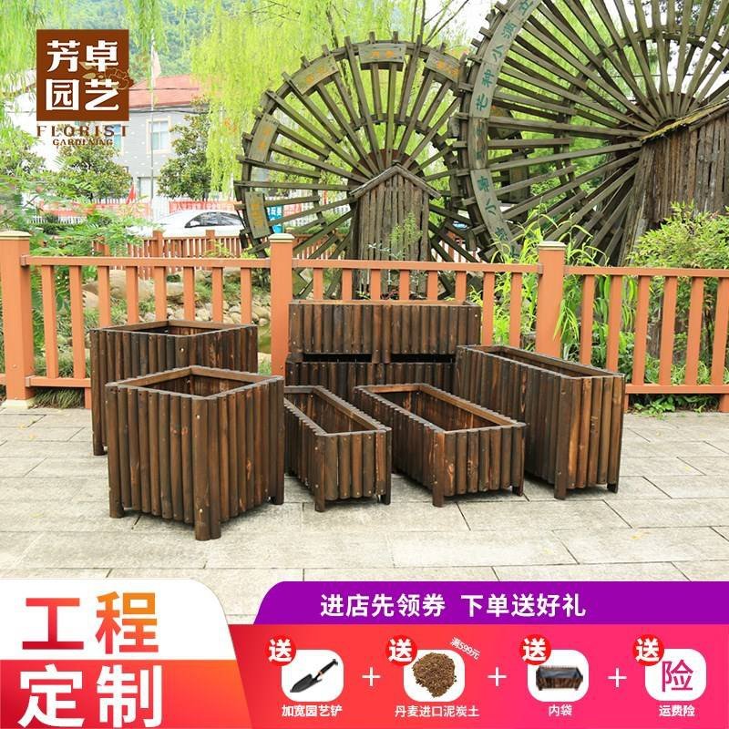 碳化防腐木花箱定制室外公园大花槽木质花坛户外景观长形实木花。热门设计联盟服务商
