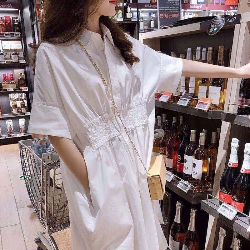 2021新款宽松收腰衬衫连衣裙中长流行裙子女夏气质白色设计感小众热门设计联盟服务商