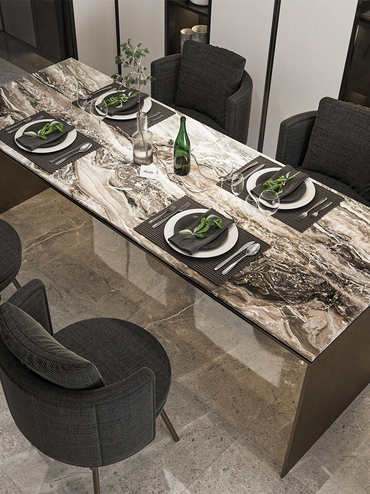 MS严选 极简空间 后现代轻奢饭桌设计师港式别墅 意式大理石餐桌热门设计联盟服务商