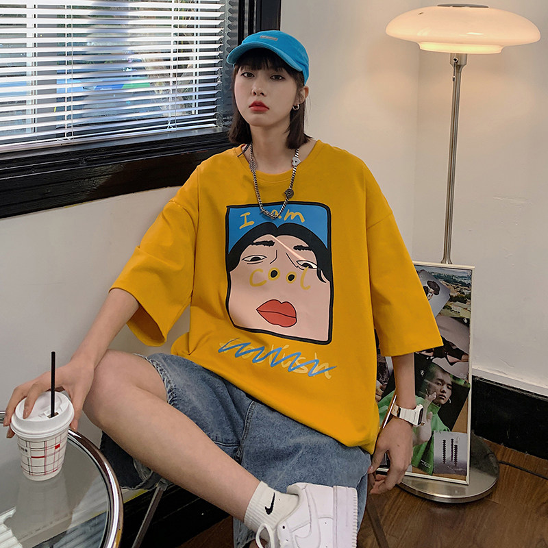 夏季ins短袖t恤女纯棉胖mm宽松bf卡通五分袖上衣200斤大码半袖潮热门设计联盟服务商