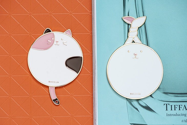 韩国创意小镜子女随身镜便携可爱ILOOK合金手柄镜化妆镜女卡通猫热门设计联盟服务商