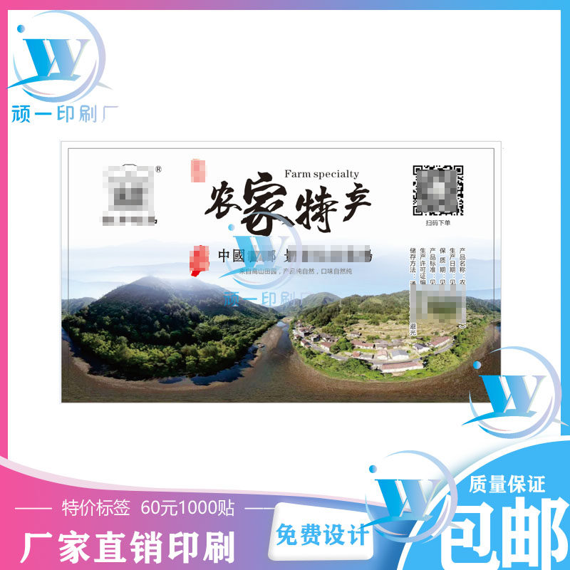 设计印刷农家特产鸡蛋礼盒不干y胶哑膜二维码商标定制辣条蛋糕贴热门设计联盟服务商
