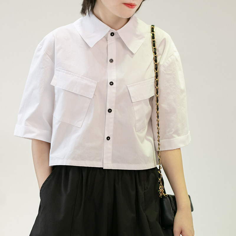 清仓特价衬衫女设计感小众法式港味新款夏季宽松白色小个子上衣热门设计联盟服务商