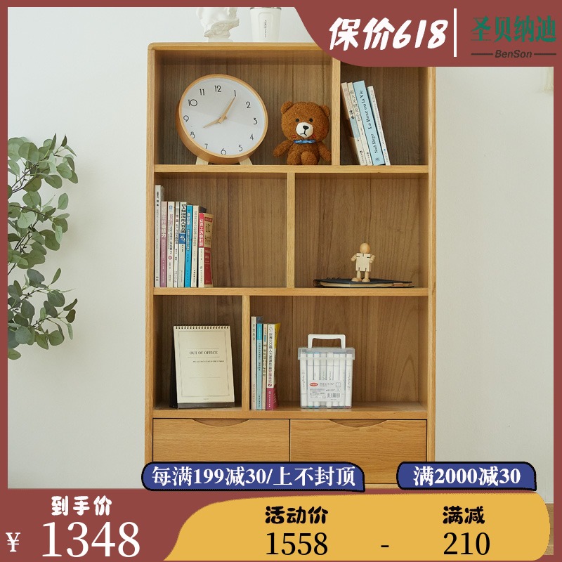 纯实木书柜北欧简约带抽屉展示柜陈列架客厅立柜白橡木收纳储物柜热门设计联盟服务商