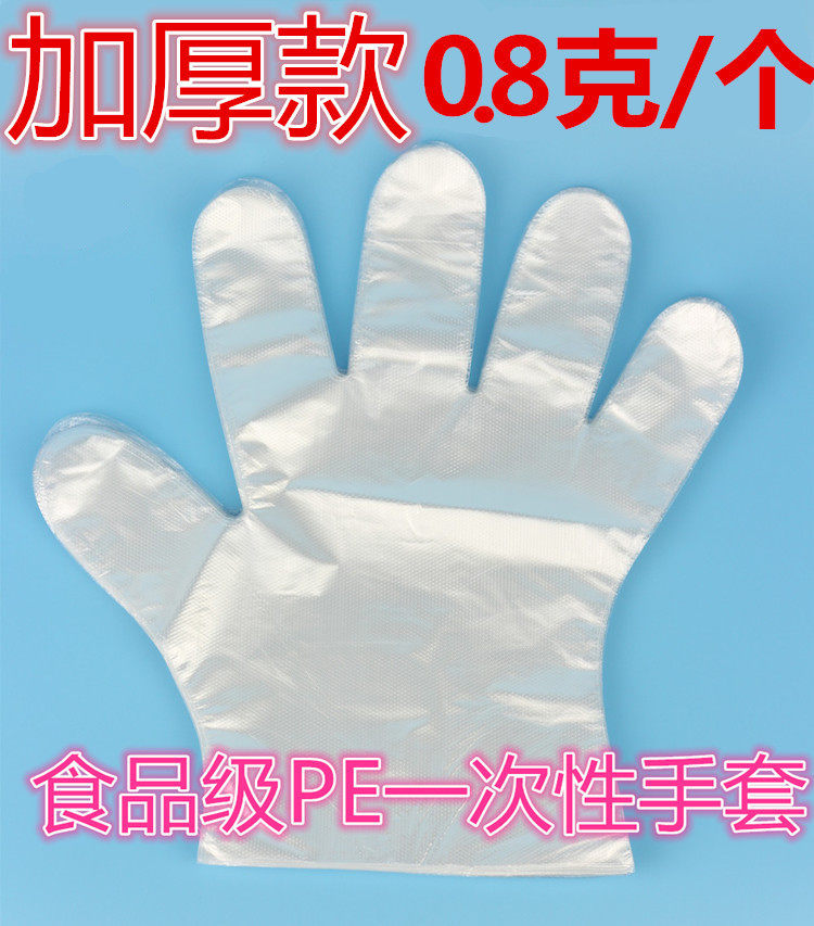 加厚0.8g克一次性手套食品餐饮小龙虾透明塑料PE薄膜手套美发家用热门设计联盟服务商