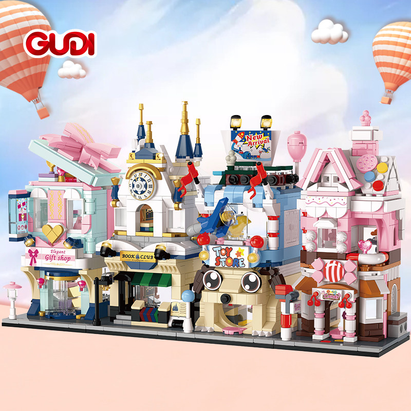 新乐新古迪城市街景梦幻街道商店组装模型儿童拼装积木拼插玩具屋热门设计联盟服务商