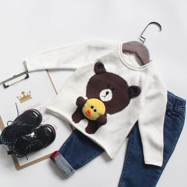 ins款童装秋冬新款布朗熊纯棉线衫毛衣 卡通针织衫小熊宝宝毛衣热门设计联盟服务商