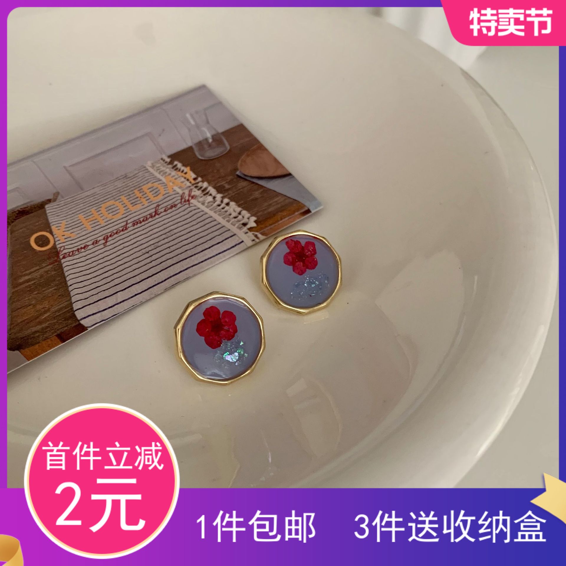 S925新款其他复古永生干花耳钉耳环文艺气质in女风设计感耳饰品热门设计联盟服务商